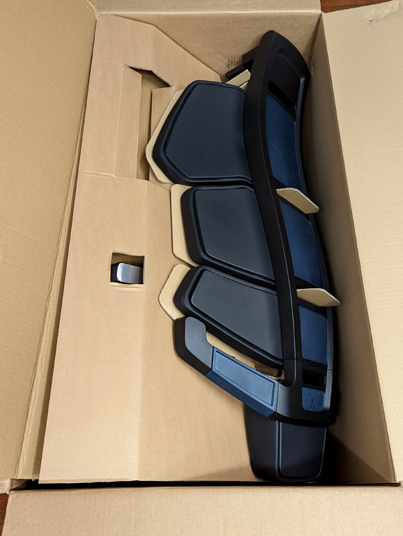 Ganz im Sinne der Nachhaltigkeit versucht ADEPT beim Versand auf Kunststoffverpackungen zu verzichten. Im großen Karton befinden sich nur mehrere Zwischeneinlagen aus Karton, welche für den Transport gut geeignet sind und eine solide sowie sichere Verpackung der Einzelkomponenten sicherstellen. Neben dem Montagewerkzeug besteht der Lieferumfang aus der Rückenlehne, dem Fußkreuz und der Sitzfläche. Der Stuhl wird mit europäischen Rohstoffen in Deutschland produziert um weitere Wege zu vermeiden und ADEPT finanziert als Klimaausgleich Klimaschutzprojekte.