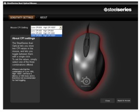 Von einem Treiber im eigentlichen Sinne kann bei der Ikari Optical nicht gesprochen werden. Das ist vom Hersteller allerdings auch genau so gewollt, denn laut Aussage von SteelSeries soll die Maus damit volle Plug and Play-Funktionalität bieten und dem Spieler etwa auf LAN-Events ermöglichen, die Maus auch ohne Treiber wie gewohnt nutzen zu können. Etliche Funktionen wie die Zeigerbeschleunigung u.a.m. können zudem nach wie vor durch den Windows-Treiber zugewiesen werden und somit beschränkt sich die beigelegte Software lediglich auf eine Funktion zur Einstellung des dpi- bzw. cpi-Wertes. Hier finden wir eine Besonderheit: SteelSeries spricht in diesem Zusammenhang nicht von dpi, sonder von cpi (counts per inch). Damit wird, so die Argumentation des Herstellers, genauer ausgedrückt, welche Größe für die Genauigkeit einer Maus relevant ist: Die Abtastrate pro Zoll. Dpi (dots per inch) wiederum sei ein Begriff aus der Druckindustrie (was korrekt ist) und bezeichne die Auflösung pro Zoll. Somit könne letzterer Begriff nicht als Maß für den Sensor einer Maus gelten, da er nicht korrekt ausdrücke, welche Größe relevant sei.