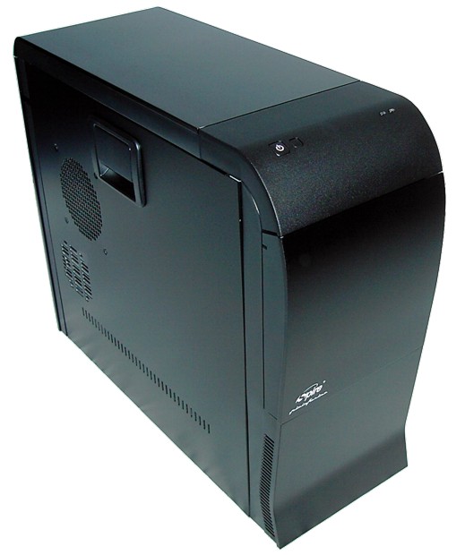 Das Spire ist eine Hybrid-Konstruktion aus einem Stahl-Chassis und Verblendungen aus Aluminium. Die gesamte Frontpartie sowie das Dach des Gehäuses sind mit sauber lackierten schwarzen Aluminiumplatten in 6 mm Wandstärke versehen. Das gibt dem Gehäuse ein ansprechendes Äußeres, treibt aber auch das Gewicht nach oben. Knapp 14,3 Kg Leergewicht sind ein Wort und gereichen manchem Big Tower zur Ehre. Die aufklappbaren Seitenwände bestehen aus lackiertem Stahl und auf der Rückseite finden wir eine Verblendung aus schwarzem Kunststoff. Diese ist mit 25 mm Wandstärke sehr dick ausgeführt, so dass die Gefahr, beim Aufstellen des Rechners Anschlüsse abzuknicken, recht klein ist, denn zwischen den PCI-Slots und dem tatsächlichen Ende der Rückwand bleibt somit einiges an Platz. Das ist sicherlich ein sinnvolles Feature, hat aber auch seine Tücken, wie wir beim Einbau des Netzteils feststellen mussten. Darüber hinaus ist das Pininfarina mit einer aufklappbaren Fronttür, hinter der die 5,25"- und 3,5"-Geräte verschwinden, sowie eine "Dachklappe" versehen, unter der sich die Frontanschlüsse für Sound, USB 2.0 und FireWire verbergen.