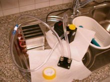 Bei unserem nächsten Testlauf verwendeten wir jedoch destilliertes Wasser sowie biegbare PVC-Schläuche, womit die Probleme nicht mehr auftraten.