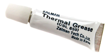 Die Zalman-Wärmeleitpaste dürfte vor allem Käufern von Zalman-Kühlern bekannt sein, da diese meist mit im Lieferumfang enthalten ist. Im Handel sind 1,5 Gramm der Zalman Thermal Grease bereits ab einem Euro erhältlich. Die kleine Tube mit der relativ großen Öffnung macht die Dosierung nicht einfach - das gleichmäßige Verteilen der weißen Masse stellt aber kein Problem dar. Dennoch wird man Schwierigkeiten haben den "letzten Tropfen" aus der Tube zu bekommen. Hier sollte Zalman besser auf die gebräuchlichen Spritzen zurückgreifen.