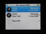 Sehr gut gefallen hat uns außerdem der Shortcut für die Wiedergabe zufälliger Musikstücke, ebenso wie "Sie hören": Man kann während dem Musik-Playback durch die Menüs navigieren und anschließend über den genannten Punkt wieder zum Bildschirm der aktuellen Wiedergabe zurück gelangen. Unter Extras finden wir, wie der Name bereits vermuten lässt, die zahlreichen Extras des iPod 5G. Da wären zum Beispiel vier Spiele (Brick, Music Quiz, Parachute und Solitaire), eine Stoppuhr mit Speicherfunktion, eine Sperrfunktion für das Display und je ein Menüpunkt für Kontakte, Kalender und Notizen. Diese lassen sich bequem über den PC synchronisieren und unterstützen beispielsweise iCal (Mac) und vCalendar/vCard Dateien von Microsoft Outlook bzw. Outlook Express (Windows). Notizen lassen sich in Form von Textdateien direkt in den dafür vorgesehenen Ordner des iPods (Notes) schieben und über Extras > Notizen einsehen.