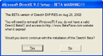 Nun ist es endlich wieder einmal soweit und die Testphase zu Microsoft´s neuster Multimedia-Schnittstelle, DirectX 9, läuft an. Die erste Beta-Version ist auch schon im Internet aufgetaucht und steht zum Download (29,3 MB) bereit. Weiter handelt es sich bei der Beta 1 um eine zeitlich begrenzte Test-Software, welche am 20. August 2002 ausläuft und danach nutzlos ist. Beim Testen dieses Beta-Programms, sollte man jedoch nichts überstürzen, da man sonst in große Schwierigkeiten kommen kann. Mehr dazu erfahren sie im nächsten Abschnitt - Installation...