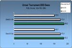 Bei Unreal Tournament 2003 (Angaben in Bildern pro Sekunde) ergab sich ein ähnlicher Verlauf wie vielen