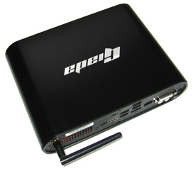 Das Flaggschiff D2305 der MediaPlus-Produktlinie an Mini-PCs von Giada Technology basiert auf einem Intel Core i5-Prozessor der dritten Generation. Der i5-3317U ist ein Dual-Core Prozessor (22 nm, 3 MB Smart Cache), der mit flotten 1,7 GHz taktet und bei Bedarf die Frequenz auf bis zu 2,7 GHz hochschrauben kann. Standardmäßig ist der D2305 mit dem Intel HM77 Express Chipset (Giada Emerald Lake 2 Motherboard) und Nvidia GeForce GT 640 Grafik (1 GB VRAM, 901/891 MHz) ausgestattet, welche auf der neuesten Kepler-Architektur basiert. Damit unterstützt der schlanke Mini-PC Auflösungen bis 2.560 x 1.600 Pixel. Entsprechende Monitore können entweder per HDMI (1.3) oder per DVI angeschlossen werden. Für die Ausgabe von Audioinhalten stehen SPDIF, sowie Audio-In/Out an Vorder- und Rückseite des PCs bereit.